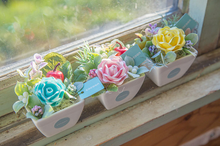 cocoonは、シルクの原料となるまゆ玉を素材にしたハンドメイドクラフトブランド。